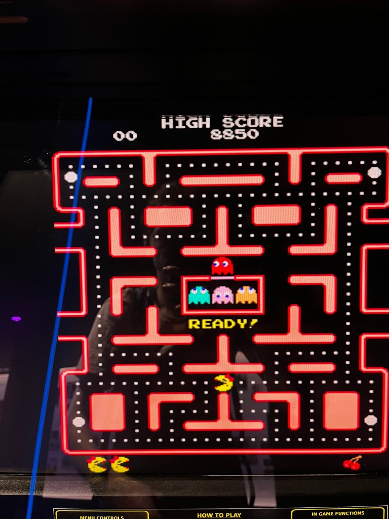 I wandered through the exhibits which had lots of interactive displays. I spent some time trying out various video games, and even got the high score on Pac-Man.