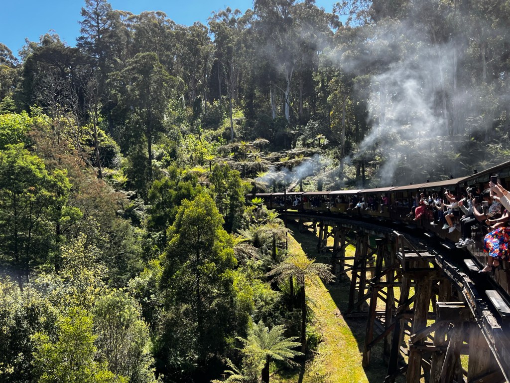 There were lots of properties backing onto the railway, and as the train went by, people would be standing on their balconies waving. It was recess when we passed Emerald Primary School, and all the kids ran down to the fence to say hi. Puffing Billy runs everyday of the year, except Christmas, often with multiple trips per day, so it’s great to see the love the community has for this unique attraction.